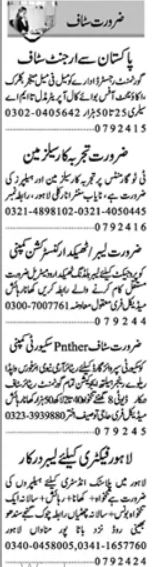 Private Company invites applications for job positions advertised in daily Dunya dated 7 September 2024 for following vacancies in Lahore, lahore Punjab Pakistan.