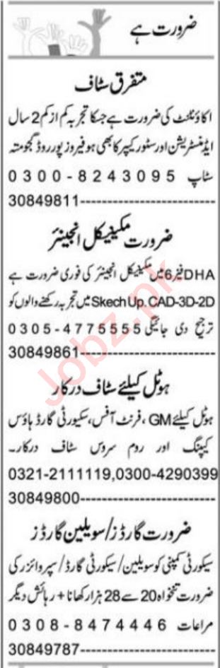 Private Company Lahore, lahore Punjab Pakistan invites applications from eligible candidates for the post of retired staff, mechanical engineer, security guard and accountant as per advertisement of May 9, 2023 published in daily Express Newspaper. Intermediate, Bachelor, Middle and Matric etc. educational qualification will be preferred.