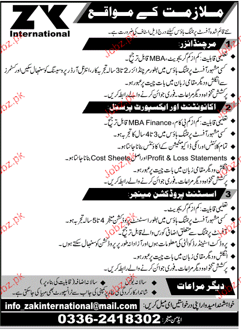 Apply as per details in job advertisement. Login to view further details of how to apply via https://www.jobz.pk online.