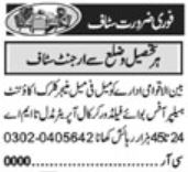 Private Company is looking for candidates for following posts as per job advertisement published in daily Khabrain Newspaper of July 5, 2023 for location Lahore, lahore Punjab Pakistan: