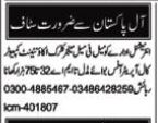Apply as per details in job advertisement. Login to view further details of how to apply via https://www.jobz.pk online.