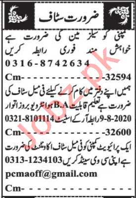 Vacancies in Private Company Advertisement August 2020