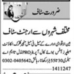Apply as per details in job advertisement. Login to view further details of how to apply via https://www.jobz.pk online.