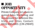 Accountant, Sales & Marketing Officer Jobs 2018 In Lahore
