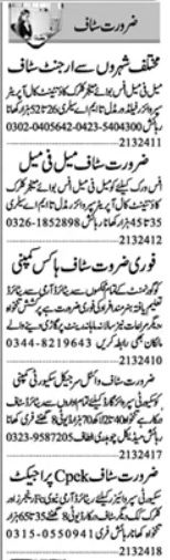 Private Company invites applications for job positions advertised in daily Dunya dated 21 March 2024 for following vacancies in Lahore, lahore Punjab Pakistan.