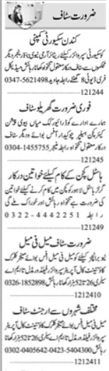 Private Company Islamabad, islamabad Islamabad Pakistan invites applications from eligible candidates for the post of clerk, accountant, call operator, security staff, cook, husband wife, patient care, kitchen helper, security supervisor, field worker, chowkidar, driver, office boy, manager and supervisor as per advertisement of January 12, 2024 published in daily Dunya Newspaper. B.com, BA, Matric, Intermediate and Middle etc. educational qualification will be preferred.