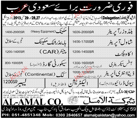 Accountant, Shawal Operators, Office Secretary Wanted
