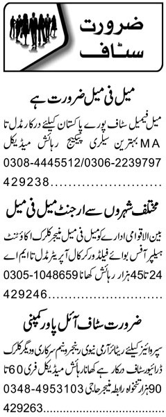 Private Company jobs advertisement dated about 3 May 2023 in daily Roznama 92 News Newspaper invites application for the vacant post of office staff, accountant, call operator, field worker, manager, female office staff, driver, clerk, supervisor, office boy, helper, ltv driver and female manager in Multan, multan Punjab Pakistan. Candidates with Bachelor, B.com, Matric, BA, Middle and Intermediate etc. educational background will be preferred.