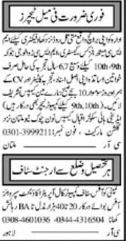 Private Company jobs advertisement dated about 30 January 2022 in daily Khabrain Newspaper invites application for the vacant post of call operator, accountant, teacher, computer operator and supervisor in Multan Punjab Pakistan. Preferred Education is Master and Bachelor etc.