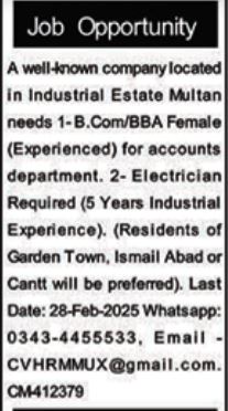Accountancy Firm latest Classifieds Finance jobs and others can be applied till 28 February 2025 or as per closing date in newspaper ad. Read complete ad online to know how to apply on latest Accountancy Firm job opportunities.