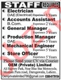 Latest OEM Private Limited Industrial Posts Lahore 2025