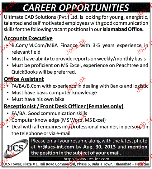 Apply as per details in job advertisement. Login to view further details of how to apply via https://www.jobz.pk online.