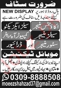 Private Company jobs advertisement dated about 12 November 2023 in daily Express Newspaper invites application for the vacant post of computer operator, sales manager, accounts manager, driver, sales executive, store manager and mobile technician in Lahore, lahore Punjab Pakistan. Persons with Intermediate and Bachelor etc. education can apply.