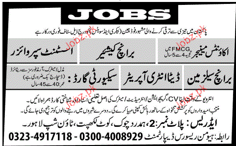 Accounts Manager, Branch Manager, Assistant Supervisor Wante