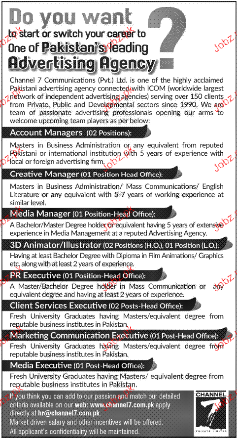 Apply as per details in job advertisement. Login to view further details of how to apply via https://www.jobz.pk online.