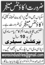Private Company Lahore, lahore Punjab Pakistan invites applications from eligible candidates for the post of accounts manager as per advertisement of April 17, 2022 published in daily Jang Newspaper. Educational qualifications required Master, M.com, Bachelor and B.com etc.