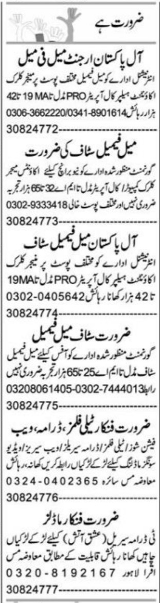 Private Company Faisalabad, faisalabad Punjab Pakistan invites applications from eligible candidates for the post of accountant, actor, call operator, manager, helper, public relation officer, accounts manager, model, clerk computer, clerk and office staff as per advertisement of August 18, 2022 published in daily Express Newspaper. Preferred Education is Matric, Middle, Bachelor and Intermediate etc.