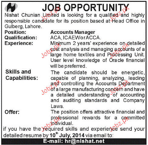 Apply as per details in job advertisement. Login to view further details of how to apply via https://www.jobz.pk online.