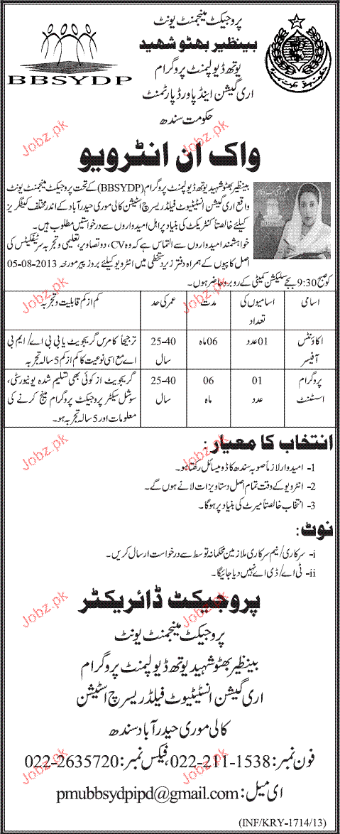 Latest Benazir Bhutto Shaheed Youth Development Program Accounting Posts Karachi 2025