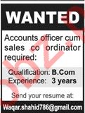 Accounts Officer Cum Sales Coordinator Job In Lahore