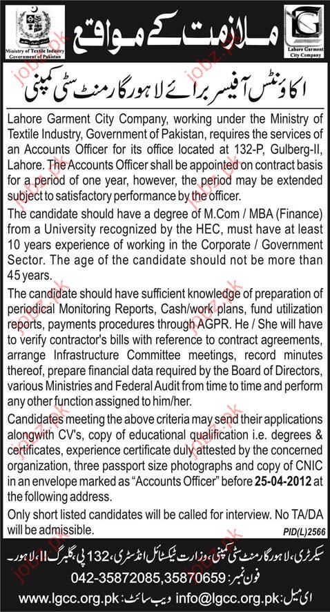 Accounts Officer Job Opportunity In Lahore Garments City Co