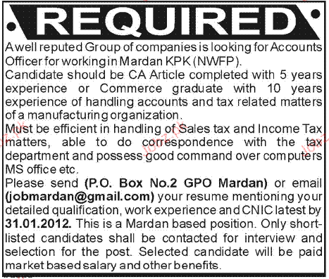 Apply as per details in job advertisement. Login to view further details of how to apply via https://www.jobz.pk online.