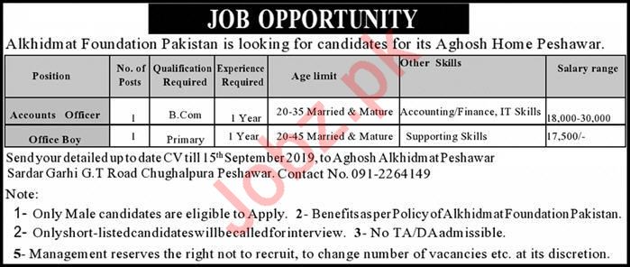 Vacancies in Alkhidmat Foundation Pakistan Advertisement September 2019