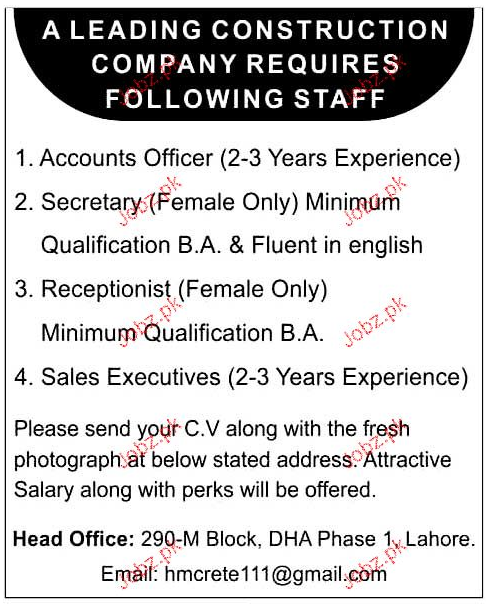 Accounts Officer, Secretary, Receptionist Job Opportunity