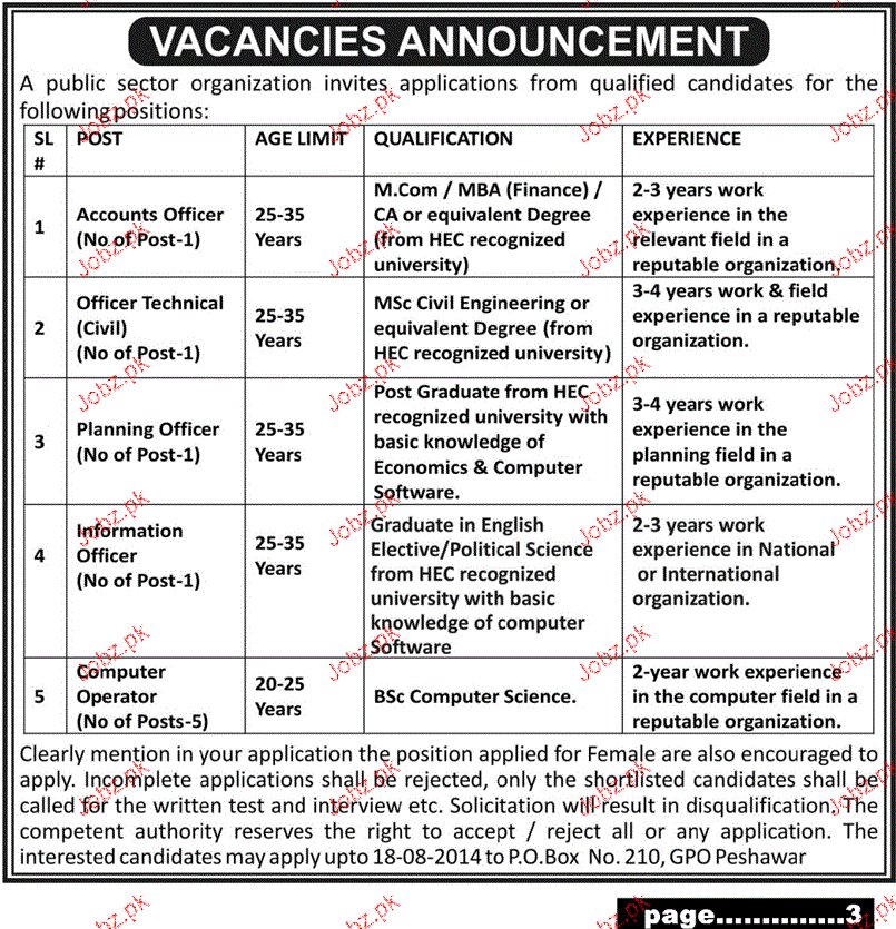 Apply as per details in job advertisement. Login to view further details of how to apply via https://www.jobz.pk online.
