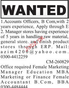 Accounts Officers, Store Mangers Job Opportunity