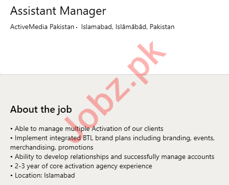 Active Media Islamabad Jobs 2020 for Assistant Managers
