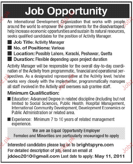 Apply as per details in job advertisement. Login to view further details of how to apply via https://www.jobz.pk online.