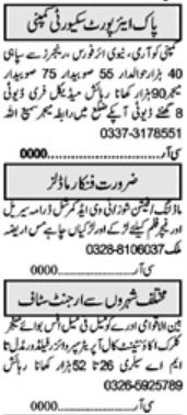 Private Company Lahore, lahore Punjab Pakistan invites applications from eligible candidates for the post of field worker, model, retired sepoy, manager, retired subedar, actor, retired havaldar, office boy, retired subedar major, supervisor, accountant, clerk and call operator as per advertisement of December 29, 2023 published in daily Khabrain Newspaper. Persons with Master, Intermediate, Bachelor, Middle and Matric etc. education can apply.