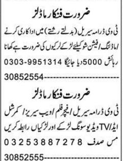 Media Industry jobs advertisement dated about 5 June 2023 in daily Express Newspaper invites application for the vacant post of model and actor in Multan, multan Punjab Pakistan. Preferred Education is Bachelor and Intermediate etc.
