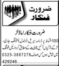 Latest Media Industry Acting Modeling Posts Lahore 2025