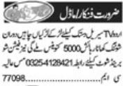Apply as per details in job advertisement. Login to view further details of how to apply via https://www.jobz.pk online.
