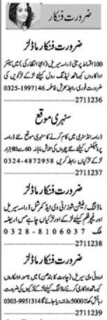Vacant posts including singer, actor and model are announced in Media Sector Lahore, lahore Punjab Pakistan as per 28 November 2023 advertisement in daily Dunya Newspaper. Persons with Matric, Intermediate and Middle etc. education can apply.