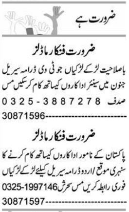 Latest Media Sector Acting Modeling Posts Lahore 2025