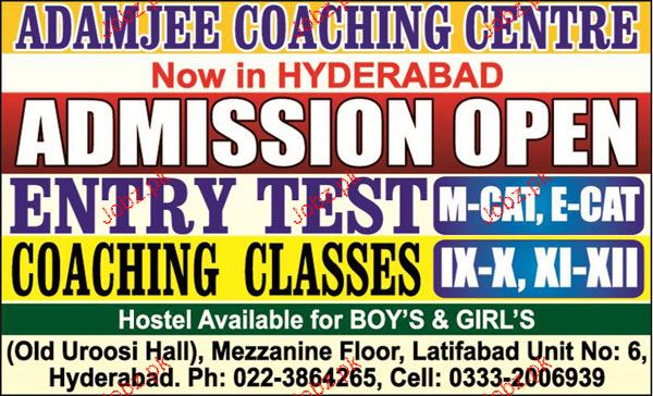 Adamjee Coaching Center Admission in IX, X, XI, XII and Courses in Hyderabad. Read newspaper ad for exact details.