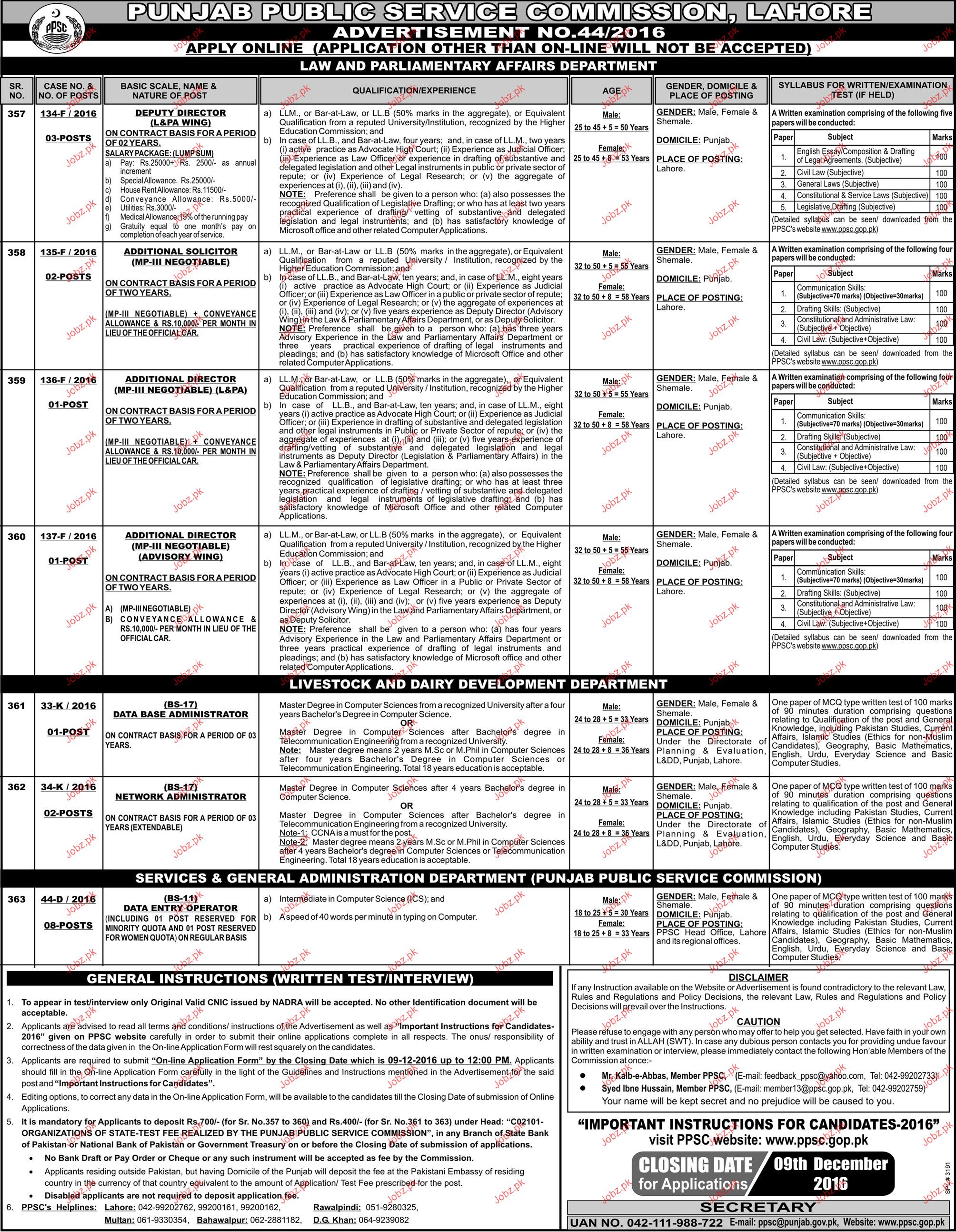 Additional Director, Deputy Director Job in PPSC