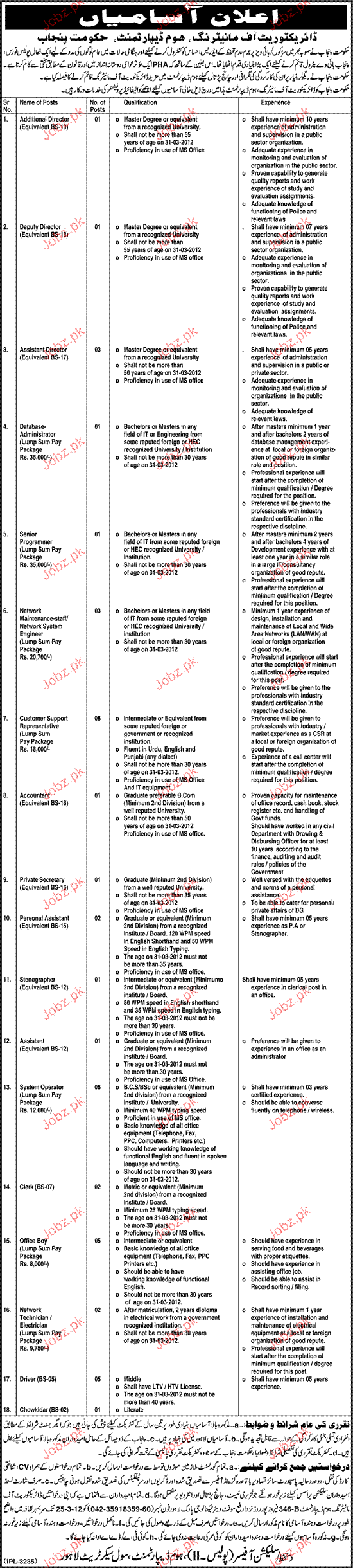 Latest Government Management Posts Lahore 2025