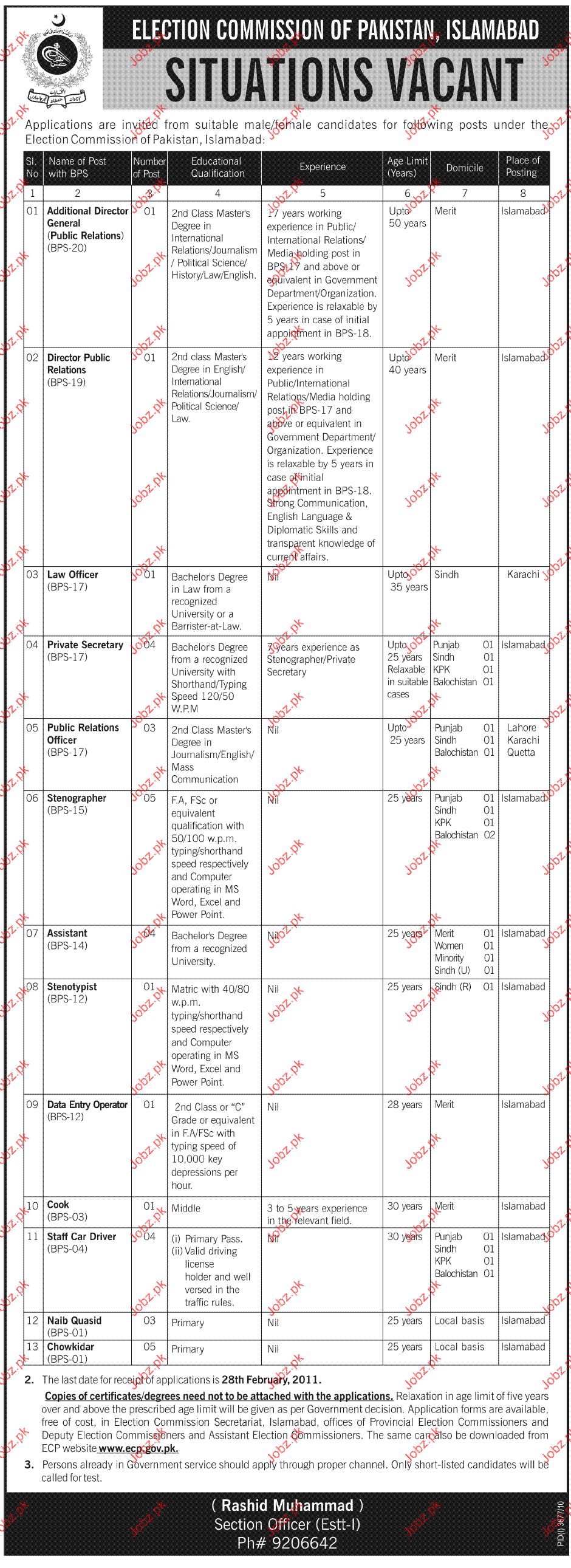 Apply as per details in job advertisement. Login to view further details of how to apply via https://www.jobz.pk online.