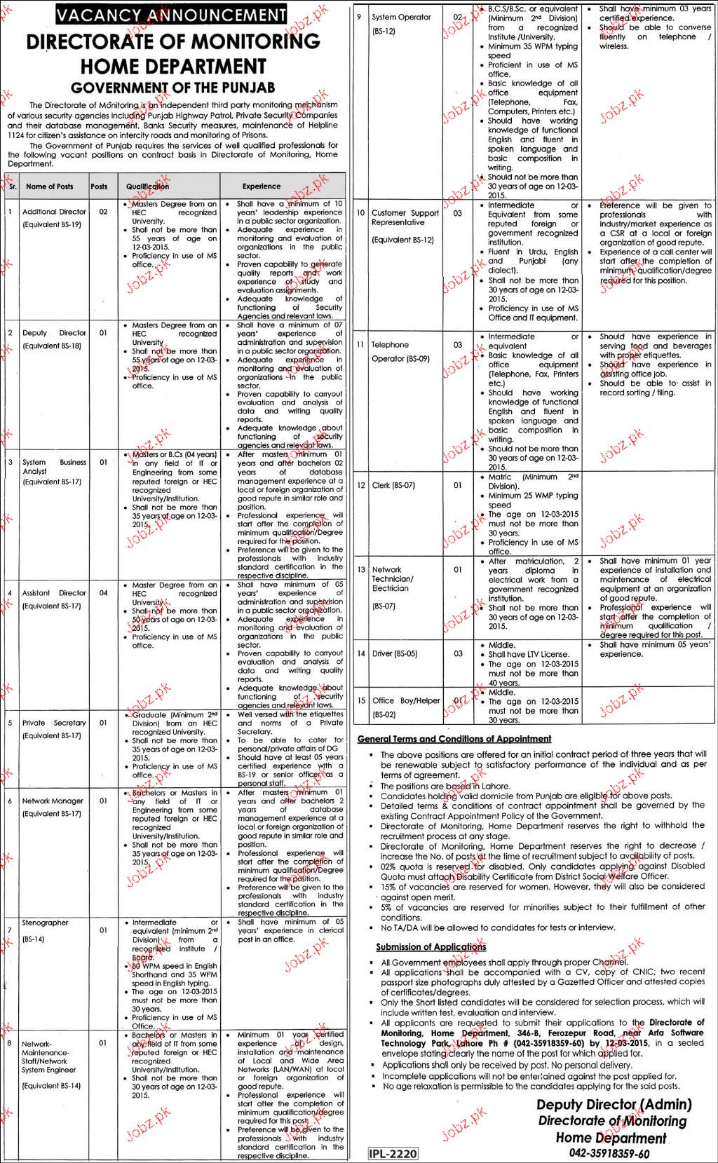 Apply as per details in job advertisement. Login to view further details of how to apply via https://www.jobz.pk online.