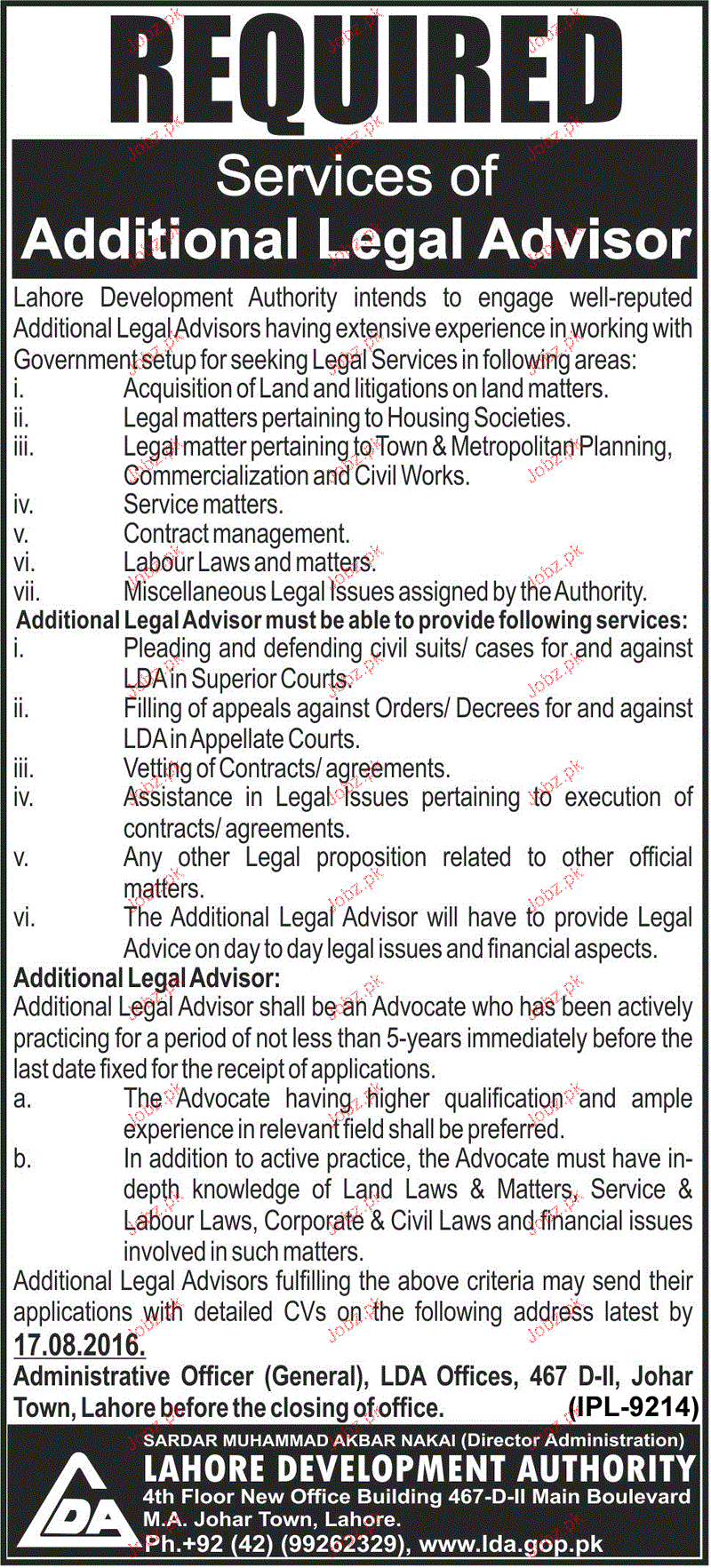 Apply as per details in job advertisement. Login to view further details of how to apply via https://www.jobz.pk online.