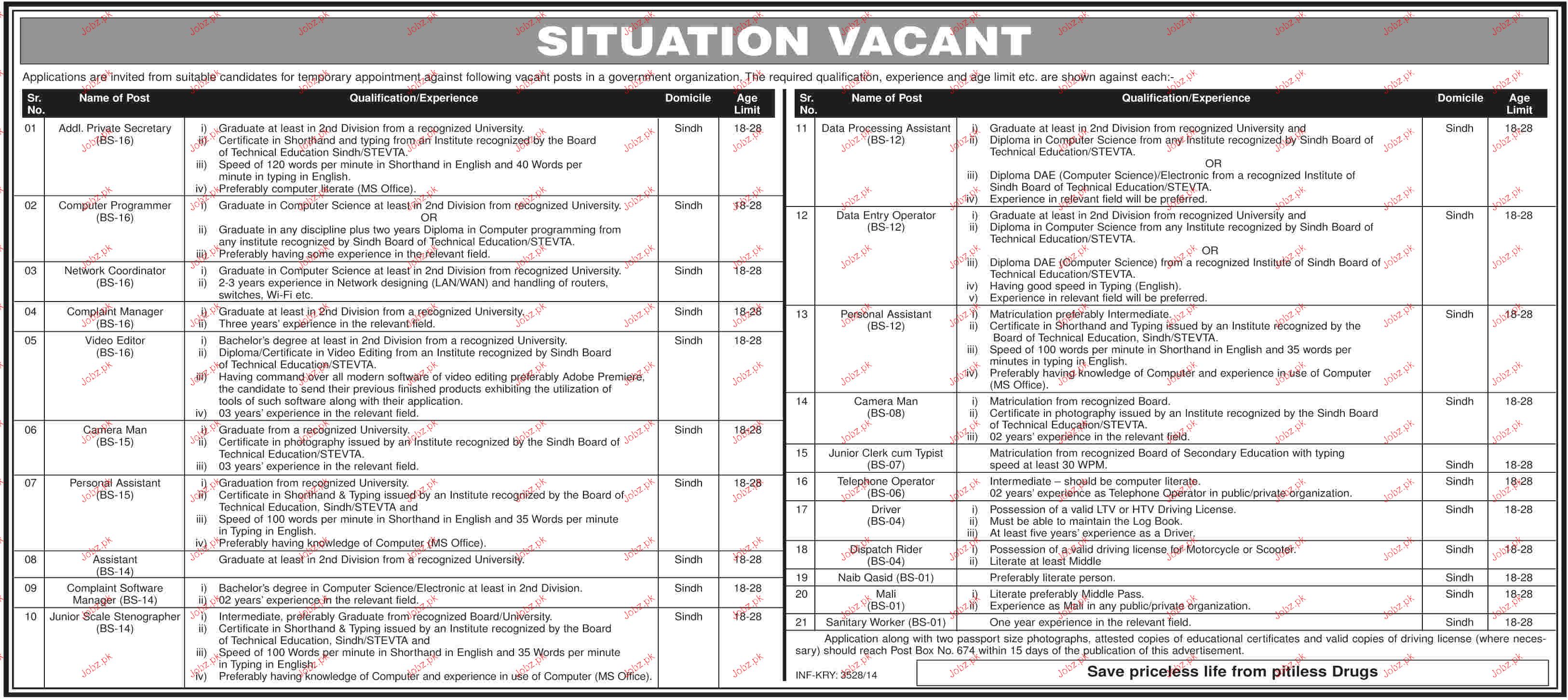 Apply as per details in job advertisement. Login to view further details of how to apply via https://www.jobz.pk online.