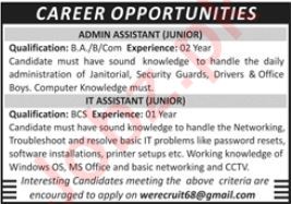 Private Company jobs advertisement dated about 5 May 2024 in daily Jang Newspaper invites application for the vacant post of admin assistant and it assistant in Lahore, lahore Punjab Pakistan. Educational qualifications required Bachelor etc.