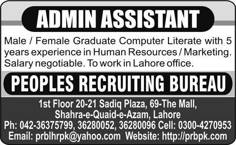 Latest Peoples Recruiting Bureau Admin Clerical Posts Lahore 2025