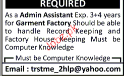 Admin Assistants And Garment Factory Workers Wanted
