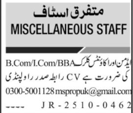 Latest Private Company Admin Clerical Posts Rawalpindi 2025
