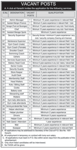 Admin Manager & Gym Coach Jobs in Karachi Club
